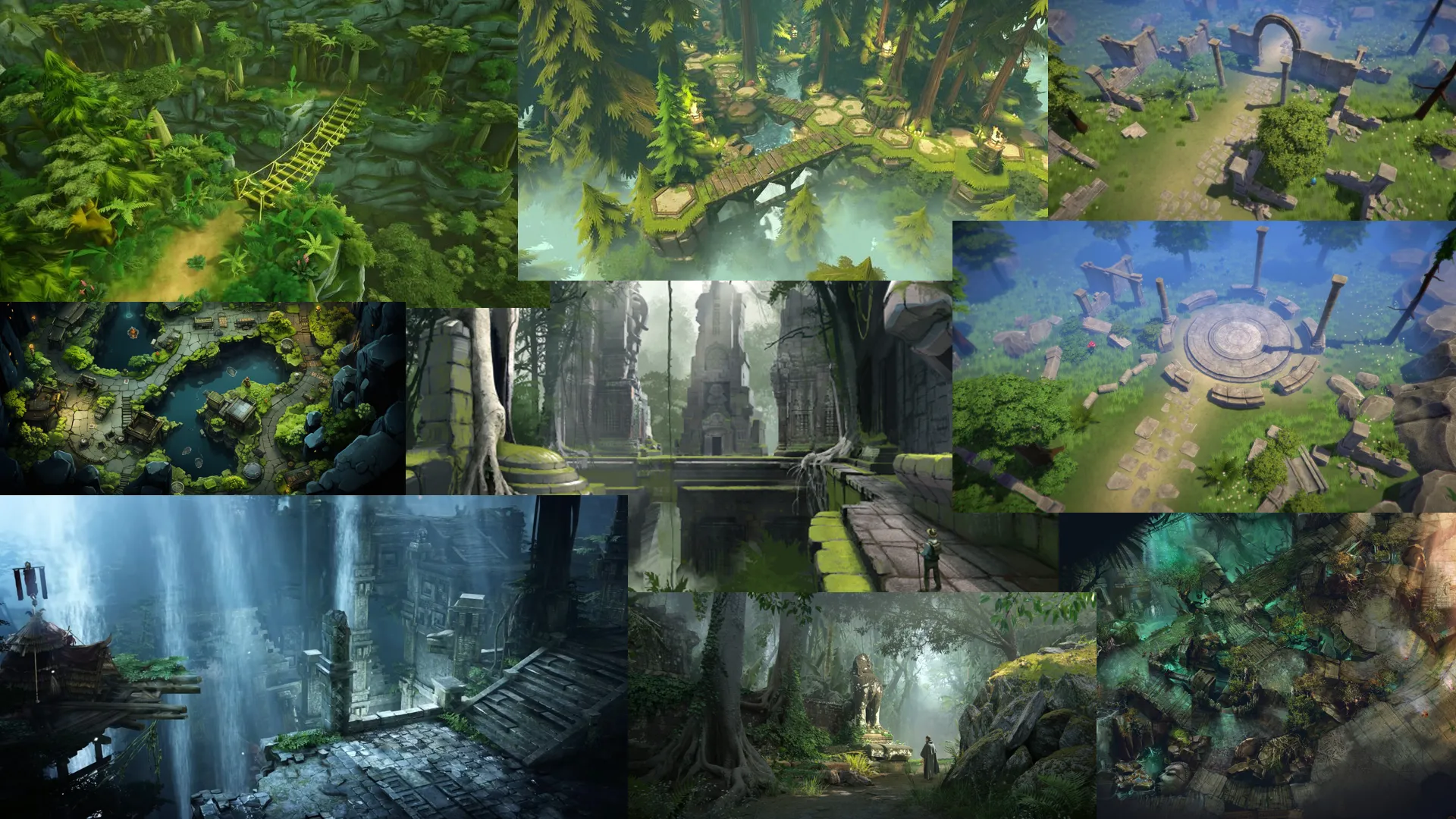 I created thematic moodboards to visualize tone and pacing. My levels leaned into the mystic and ethereal, inspired by themes of corruption, forgotten rituals, and the elemental wilds.