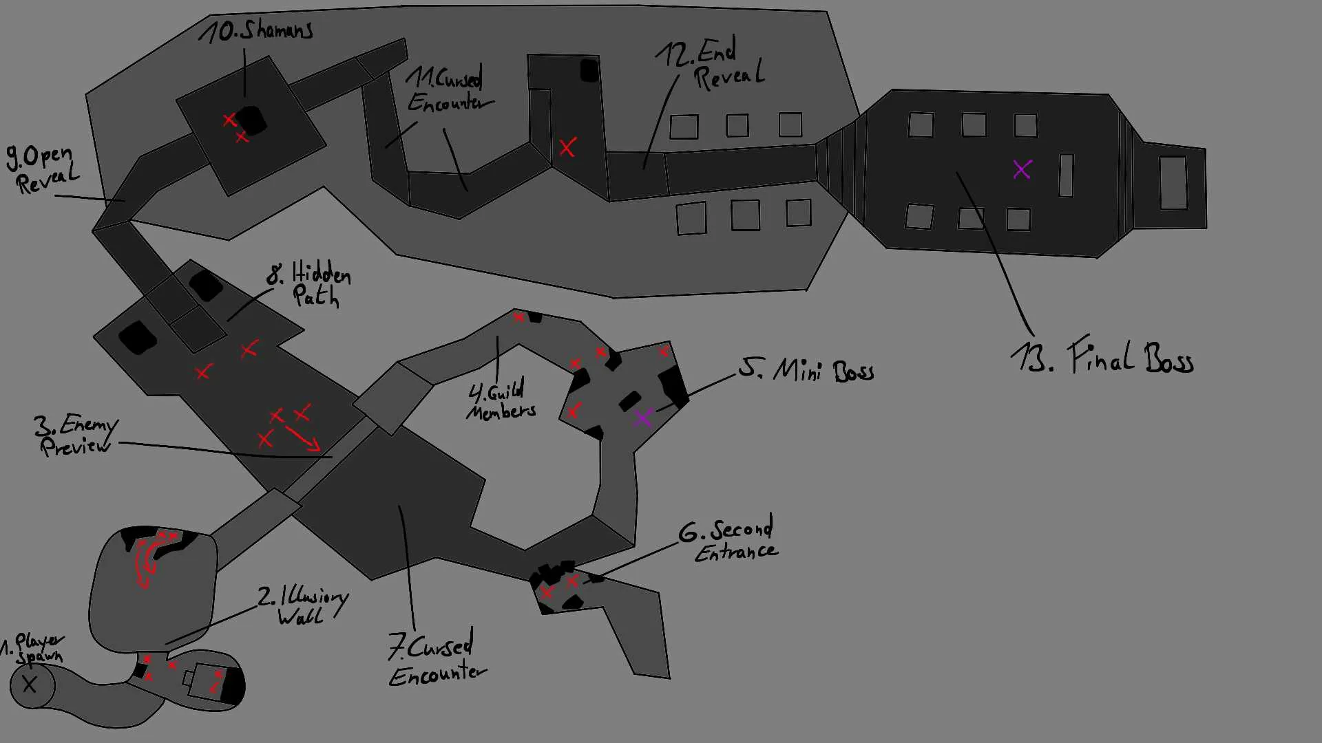 I started by diving into Albion’s community feedback and forum discussions, identifying shared player pain points, such as dungeon repetitiveness and lack of interaction. From there, I reverse-engineered existing dungeon layouts and systems.