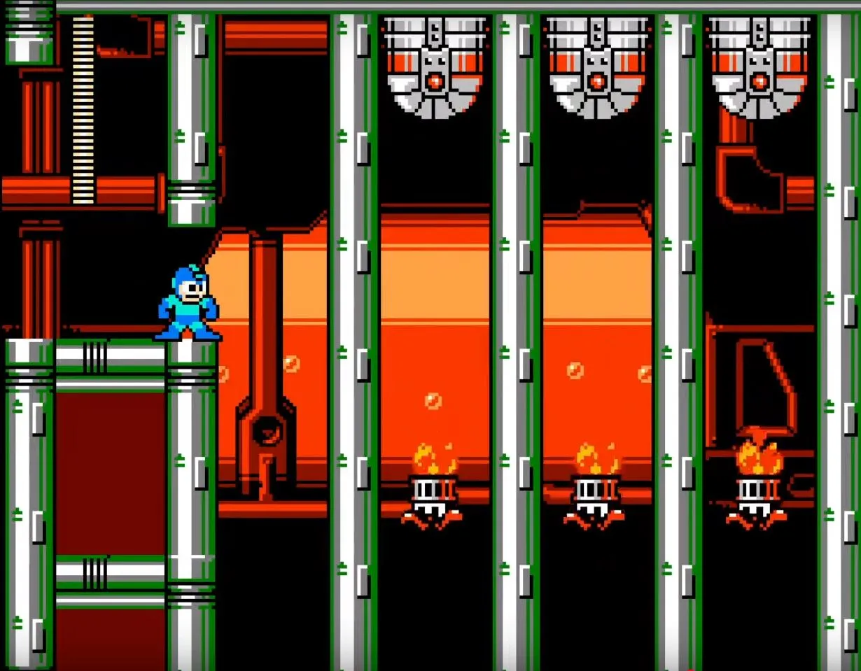 This isn’t just a battle it’s a test of everything the player has learned so far. Fire Man’s arena is the ultimate expression of the factory’s power, with molten rivers, conveyor belts, and an ever-present sense of overwhelming heat.