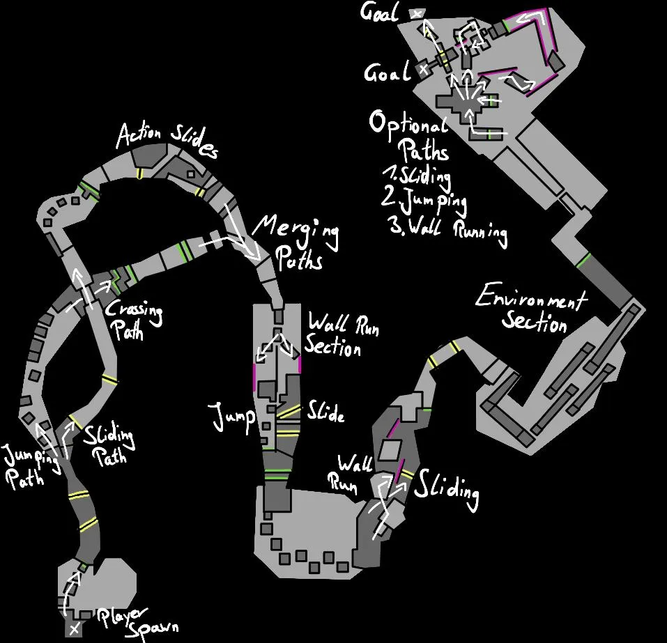 All routes and surfaces are designed with clear affordance, players instinctively know what can be run on, climbed, slid under, or vaulted over. This ensures that moment-to-moment gameplay remains smooth, reactive, and uninterrupted.
