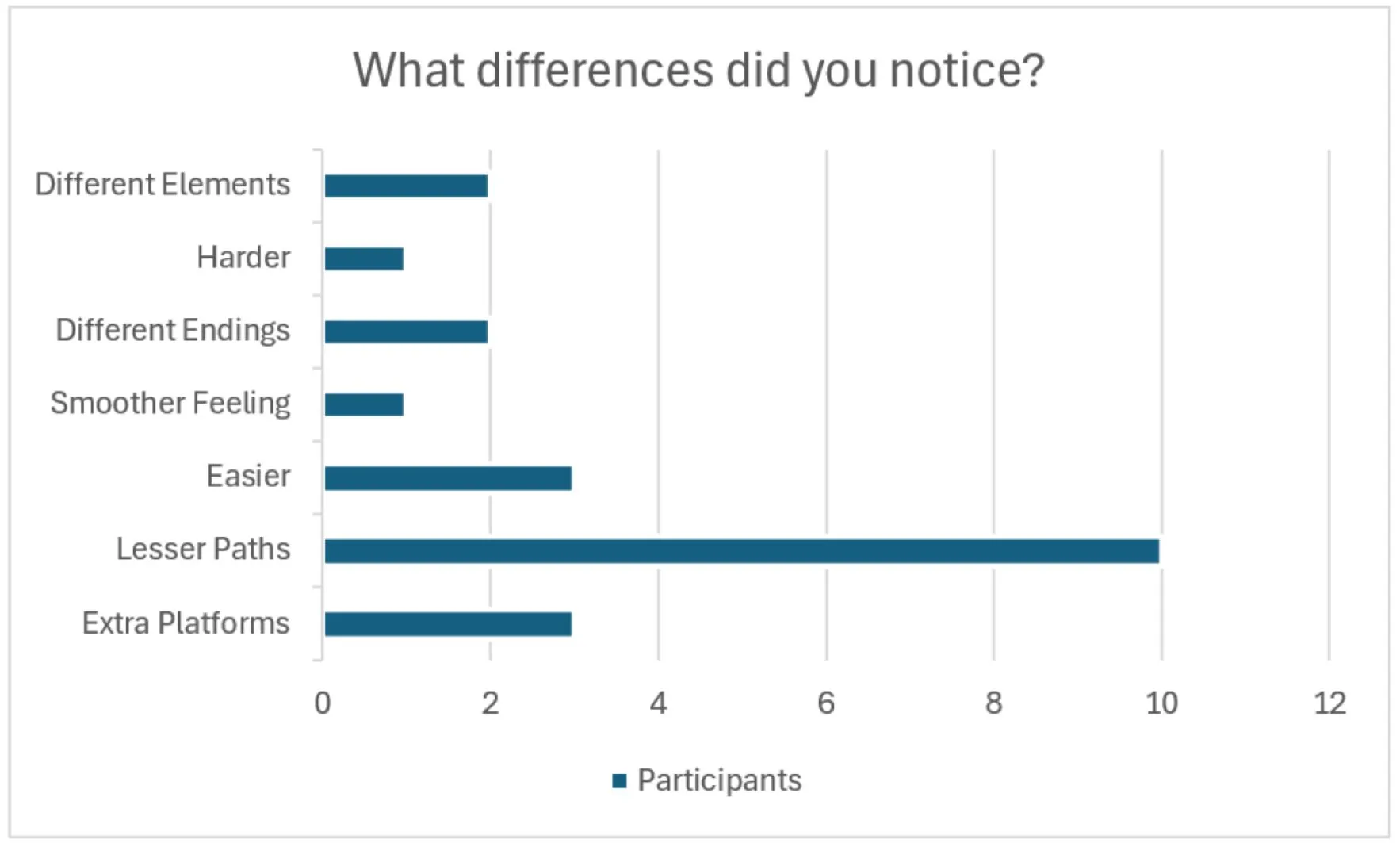 The project includes detailed analysis comparing Static Prototype (1) vs. Adaptive Prototype (2) to assess the impact of adaptive level design. Results show enhanced engagement, better skill progression, and higher player satisfaction when adaptive systems are active.