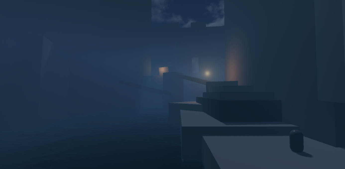 The foggy forest, with its dim blue lighting, supports a mysterious and atmospheric mood, immersing the player in a space where light, motion,and stealth drive both story and gameplay. The player’s goal is not only to follow, but also to observe and survive unseen.