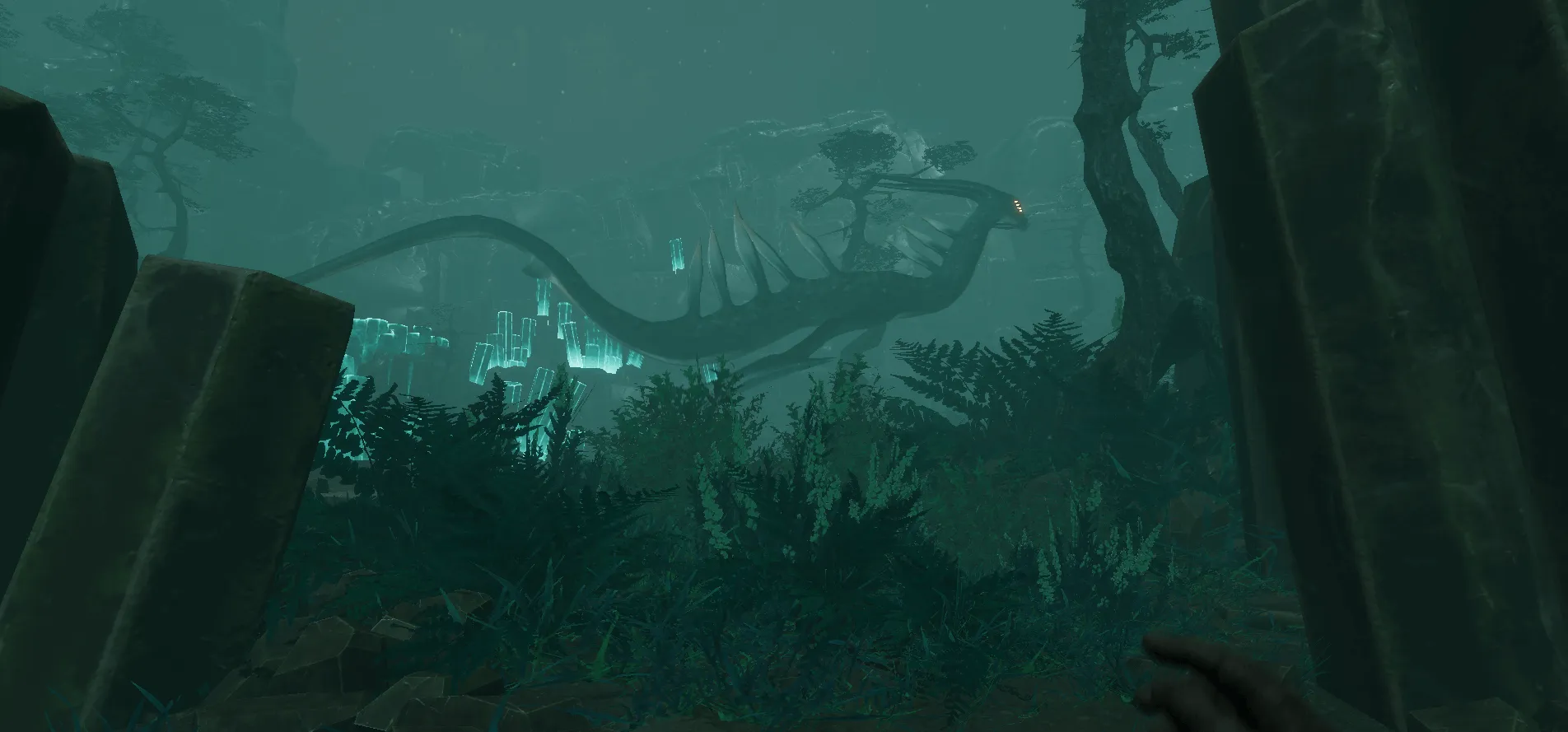 Safe Learning Environment:Early on, the design avoids high-risk situations. Players are encouraged to observe the creature from a distance, especially from a higher vantage point,which reduces tension and allows focus on understanding the mechanics.