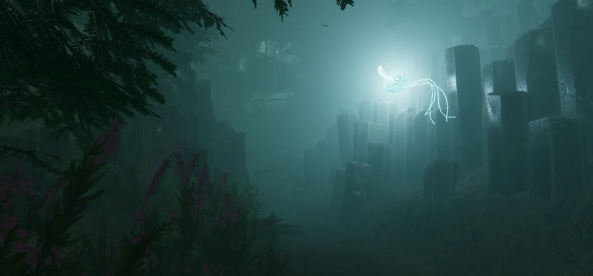 The path through the forest is designed as a curving trail, which the player initially thinks they’ve partially traversed, but it subtly shifts and evolves, creating a sense of disorientation. As the Guardians disappear into the fog, the sense of direction fades.